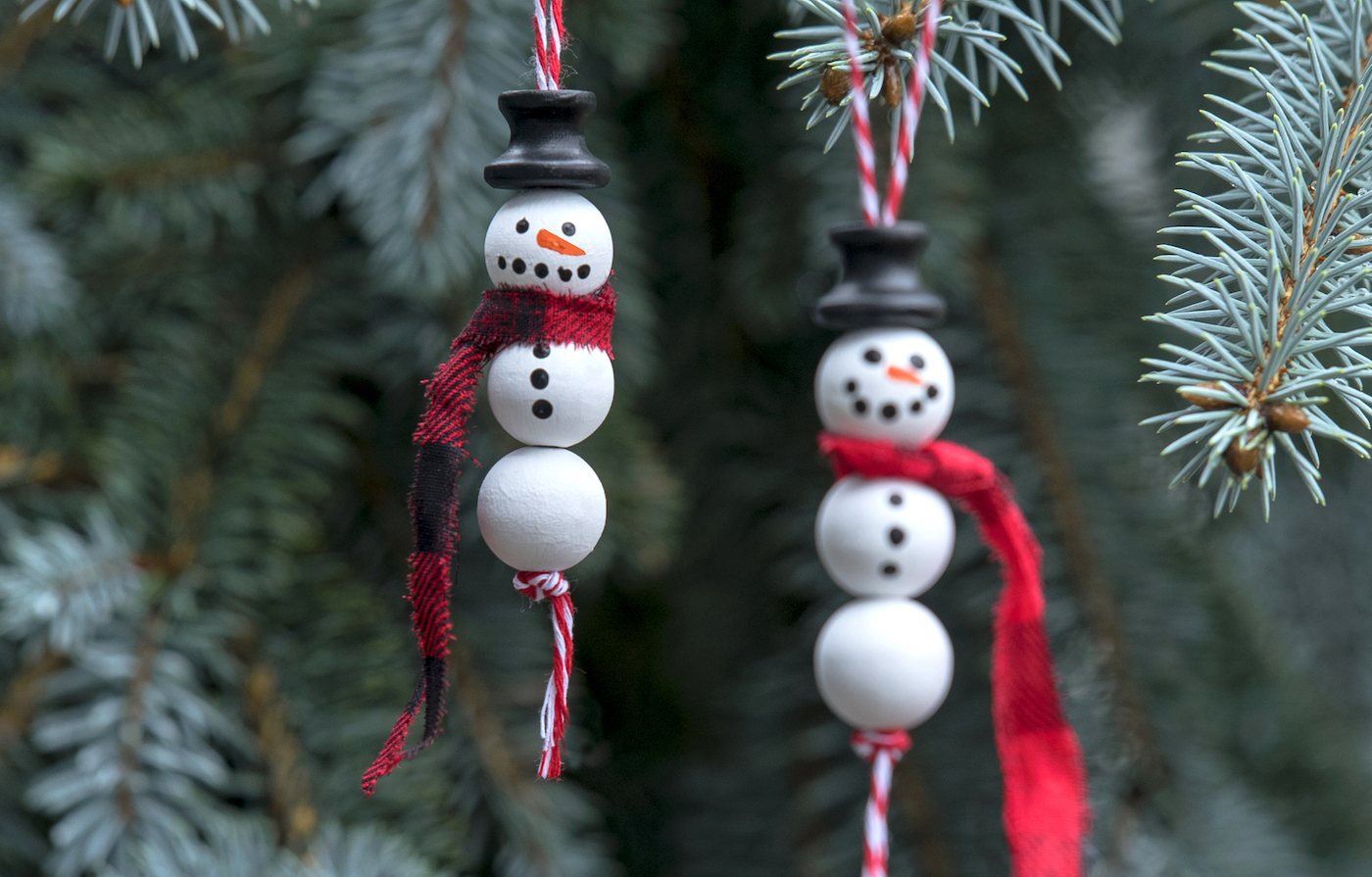 Learn how to make a wood bead snowman ornament for your Christmas tree using simple craft supplies! Easy for both adults and kids.