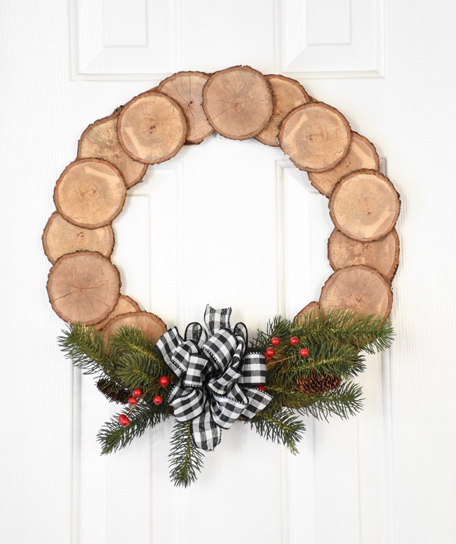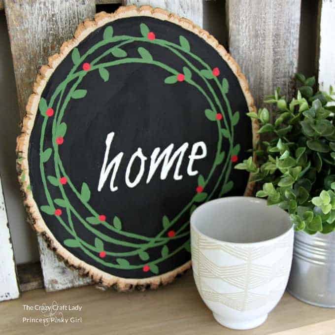 Easy tutorial to paint a simple winter wreath and create a wood slice painted wreath that will last throughout the winter. A great easy DIY Christmas craft.