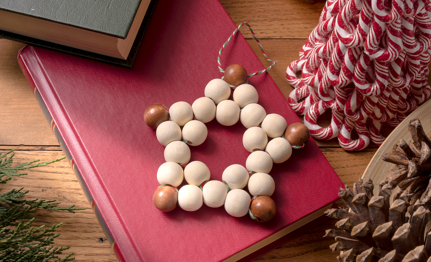 This wood tree garland takes some common craft items and turns them into charming decor for the Christmas season.