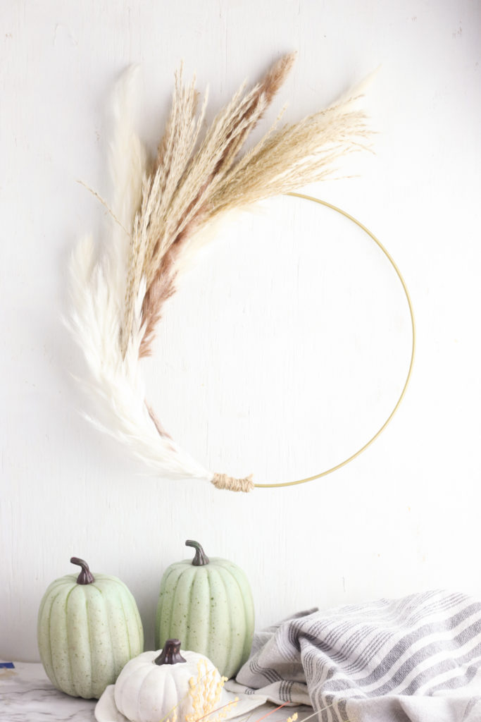 This pampas wreath is a great minimalist piece of decor alongside these painted mini pumpkins or this pampas grass arrangement!