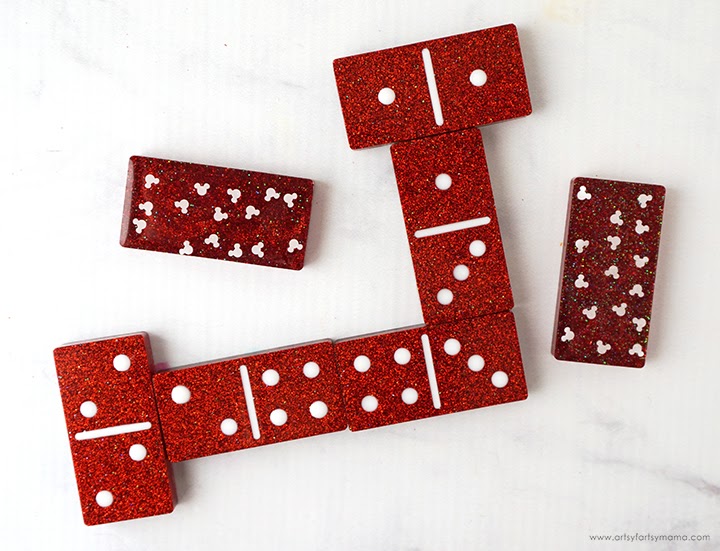 Make a custom set of Mickey Mouse dominoes out of resin to play with the family! You can use this same tutorial to make dominoes in any color or theme.